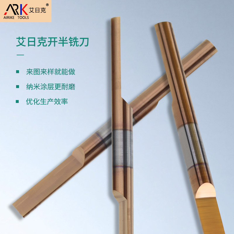 Pemotong separuh penggilingan keluli tungstensesuai untuk memproses bahan kerja dengan kekerasan sehingga HRC60 °, dan digunakan secara meluas dalam industri pemotongan mati, industri lembaga litar fleksibel, dan industri percetakan.